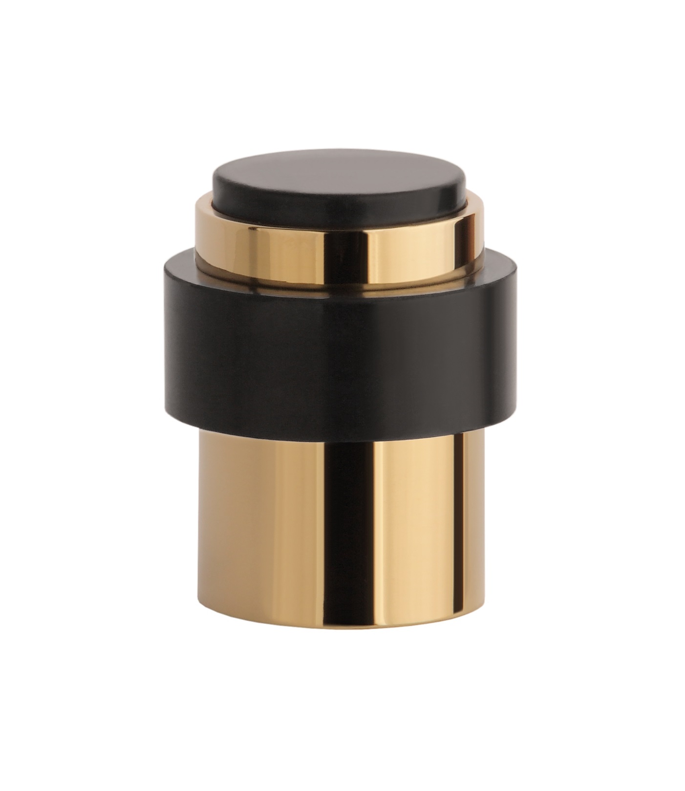 Deze ronde goud gepolijste Aprile deurstopper vloer en wand is 43 mm hoog en heeft een diameter van 35 mm.