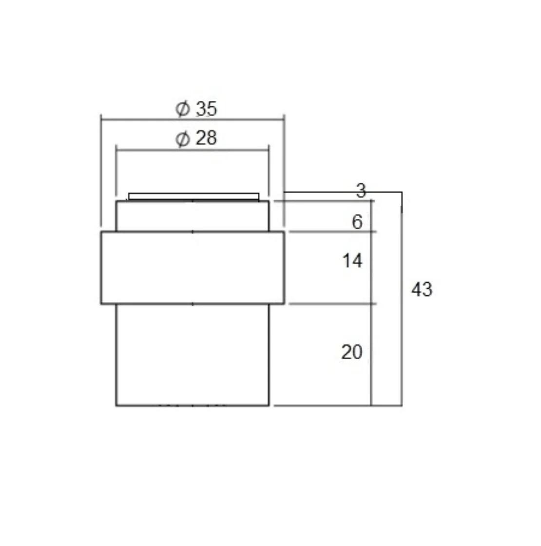 Deze ronde zwarte Aprile deurstopper vloer en wand is 43 mm hoog en heeft een diameter van 35 mm.