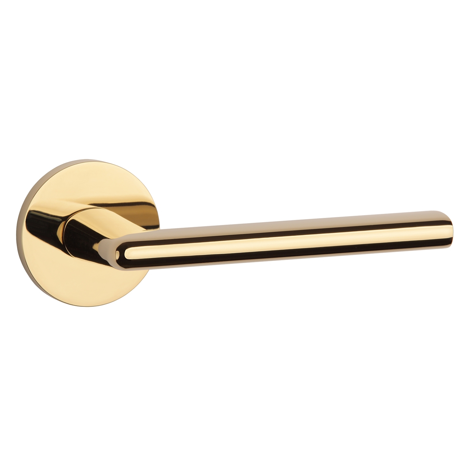 De complete set Aprile Massieve Deurkruk Kalmia Goud Gepolijst PVD Op Rond Rozet bevat: