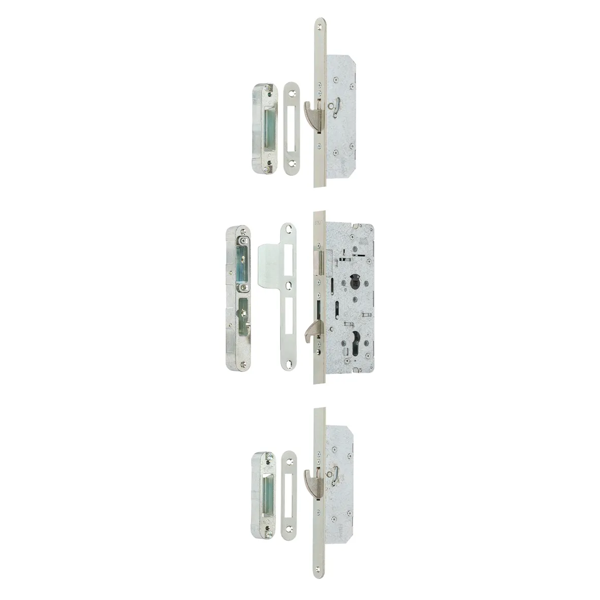 Zorg voor maximale beveiliging van uw buitendeur met dit krukbediende 3-punts veiligheidsslot. Dankzij de tandwielconstructie, gehard stalen haakschoten en verstelbare sluitkommen is de bediening soepel en duurzaam. Geschikt voor zowel links- als rechtsdraaiende deuren door de omkeerbare dagschoot. Geleverd met sluitplaten, sluitkommen en een heldere montagehandleiding. Perfect voor buitendeuren en gecertificeerd met SKG 3 en het Politiekeurmerk Veilig Wonen. Afmetingen: 1700×24 mm, materiaal: staal, afwerking: Gegalvaniseerd. Veiligheid en kwaliteit in één pakket!