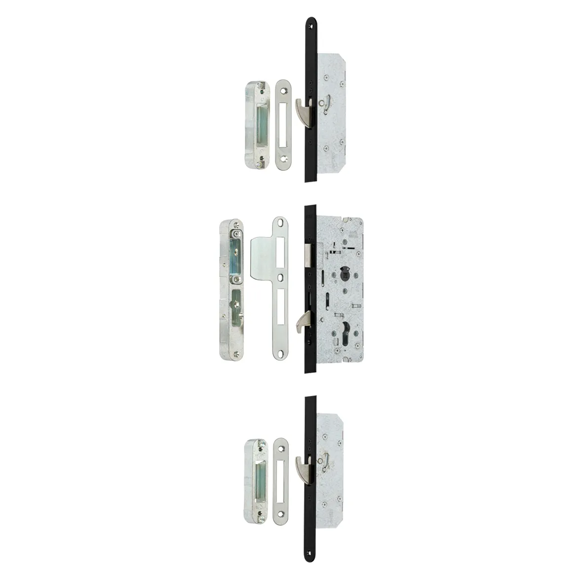 Zorg voor maximale beveiliging van uw buitendeur met dit krukbediende 3-punts veiligheidsslot. Dankzij de tandwielconstructie, gehard stalen haakschoten en verstelbare sluitkommen is de bediening soepel en duurzaam. Geschikt voor zowel links- als rechtsdraaiende deuren door de omkeerbare dagschoot. Geleverd met sluitplaten, sluitkommen en een heldere montagehandleiding. Perfect voor buitendeuren en gecertificeerd met SKG 3 en het Politiekeurmerk Veilig Wonen. Afmetingen: 1700×24 mm, materiaal: staal, afwerking: zwart. Veiligheid en kwaliteit in één pakket!