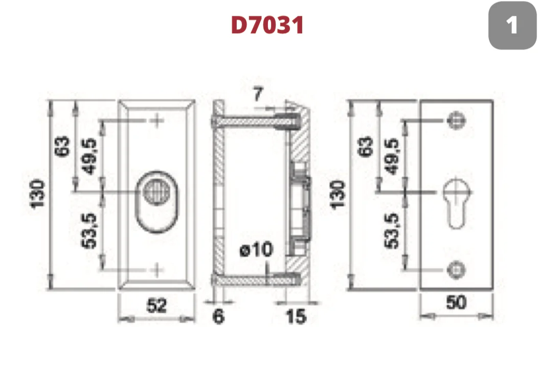 Dit veiligheidsbeslag van massief aluminium met kerntrek beveiliging heeft een afmeting van 130 x 52 x 15 mm. Het binnen schild is 130 x 50 x 6 mm. Dit set veiligheidsrozetten is standaard geschikt voor deurdikten van 35 tot 45 mm. Bij dikkere deuren heeft u langere bouten nodig.