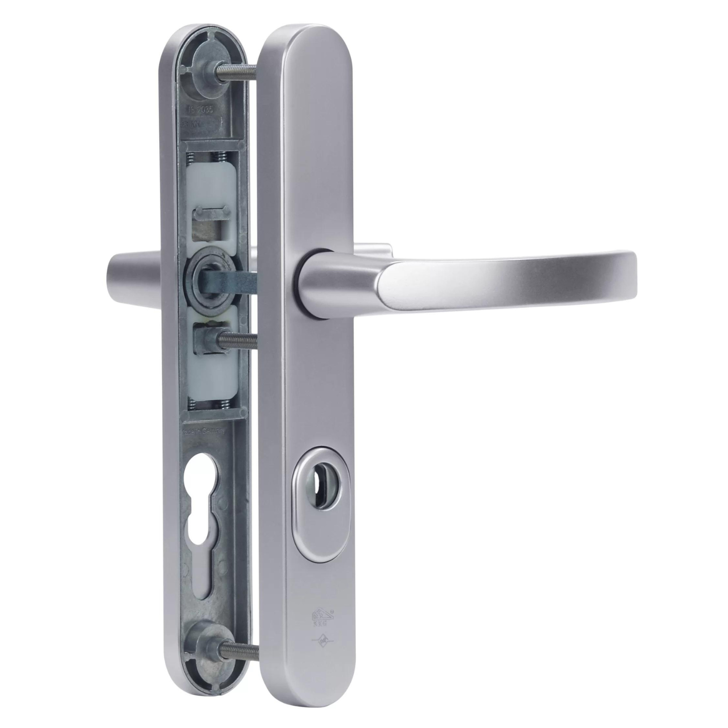 | SKG Normering SKG (Stichting Kwaliteit Gevelbouw) test en certificeert hang- en sluitwerk op inbraakwerendheid. De SKG-classificatie wordt aangeduid met sterren. Het verschil tussen SKG** en SKG*** zit in de mate van bescherming: SKG** moet in combinatie met ander beveiligingsmateriaal worden gebruikt, terwijl SKG*** op zichzelf al een hoog beveiligingsniveau biedt. SKG*** biedt 2 minuten extra inbraakvertraging ten opzichte van SKG**. | |