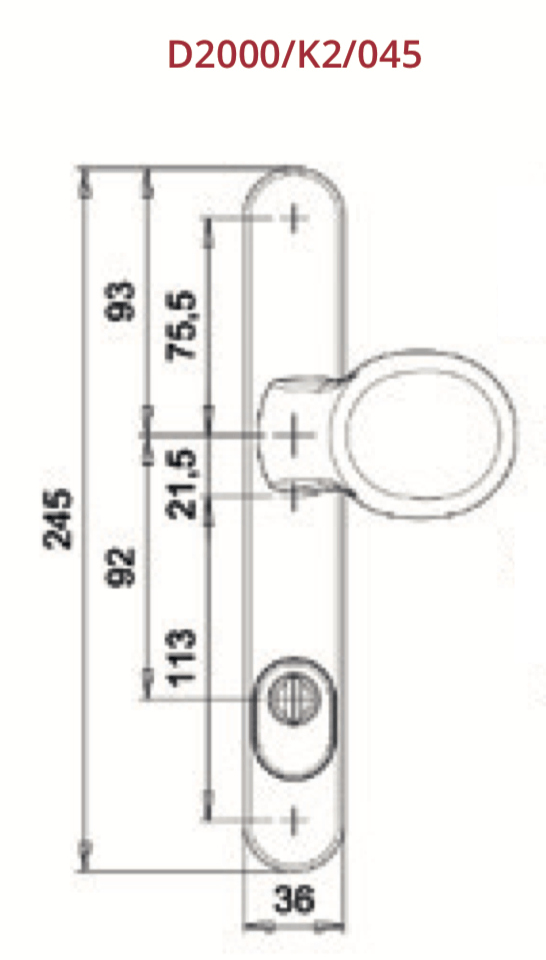 Dit voordeurbeslag Dieckmann Kronos van massief aluminium met kerntrek beveiliging en gehard stalen platen is aan de buitenzijde voorzien van een vaste greep en aan de binnenzijde van een vast draaibare kruk met veer. Dit wil zeggen dat de kruk vast zit aan het schild maar wel volledig rond kan draaien. Het beslag heeft een afmeting van 245 x 36 mm en is gemaakt in een fraai design met zijn afgeronde kanten. Het beslag is leverbaar in PC 72 en PC 92 en is standaard geschikt voor deurdikten van 49 tot 55 mm. Bij dikkere deuren heeft u langere bouten nodig.
