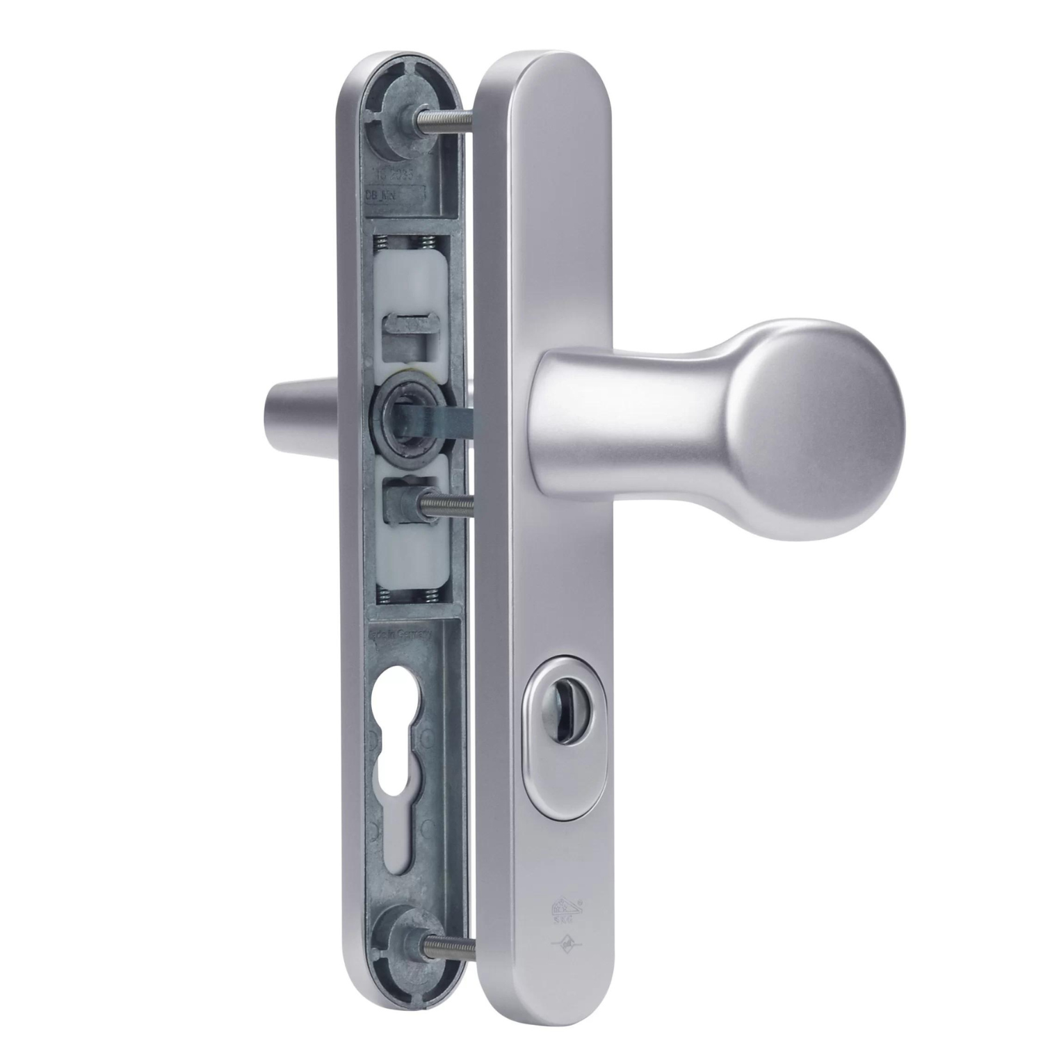 | SKG Normering SKG (Stichting Kwaliteit Gevelbouw) test en certificeert hang- en sluitwerk op inbraakwerendheid. De SKG-classificatie wordt aangeduid met sterren. Het verschil tussen SKG** en SKG*** zit in de mate van bescherming: SKG** moet in combinatie met ander beveiligingsmateriaal worden gebruikt, terwijl SKG*** op zichzelf al een hoog beveiligingsniveau biedt. SKG*** biedt 2 minuten extra inbraakvertraging ten opzichte van SKG**. | |