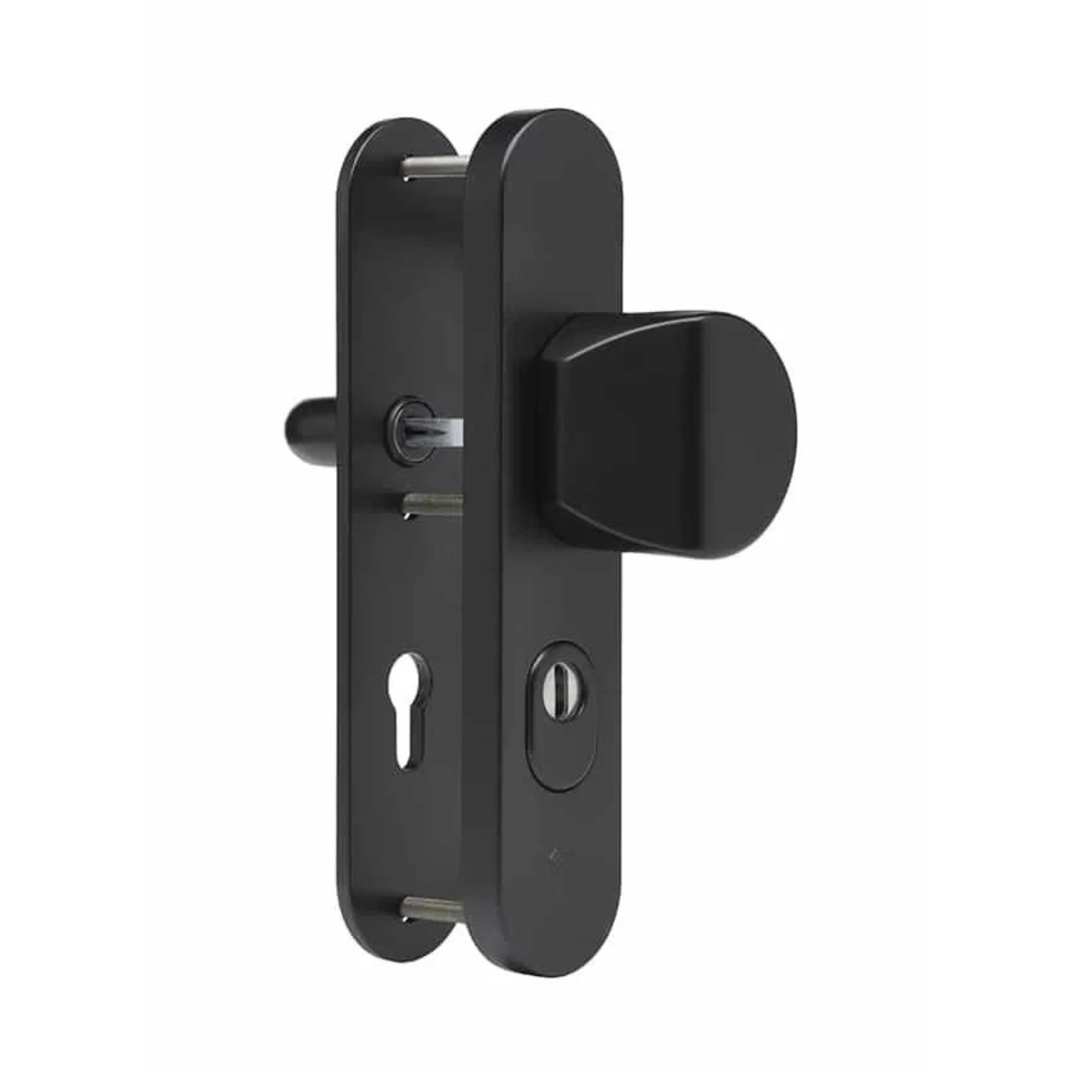 Dit Dieckmann Rombus voordeurbeslag van massief aluminium met kerntrek beveiliging en gehard stalen platen is aan de buitenzijde voorzien van een vaste greep en aan de binnenzijde van een kruk. Het beslag heeft een afmeting van 240 x 50 mm en is gemaakt in een fraai design met zijn afgeronde kanten. Het beslag is met mat zwarte coating behandeld. Het beslag is leverbaar in PC 55, PC 72 en PC 92 en is standaard geschikt voor deurdikten van 35 tot 45 mm. Bij dikkere deuren heeft u langere bouten nodig.