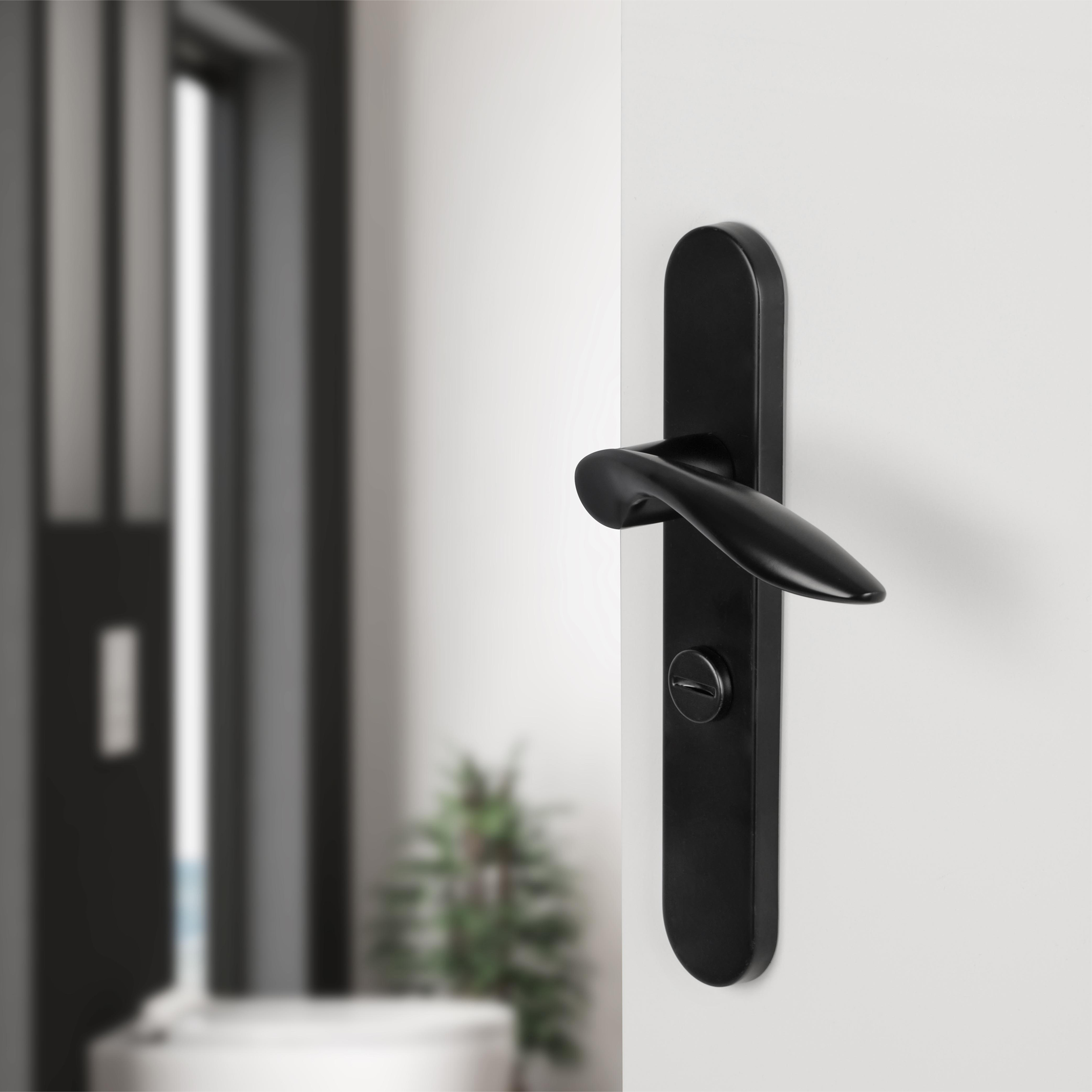 Voeg stijl en functionaliteit toe aan je interieur met deze gebogen deurkruk op ovaal schild uit de populaire Differnz Groningen-serie. De set is uitgevoerd in zwart, een trendy en tijdloze kleur die perfect past in zowel moderne als klassieke interieurs.