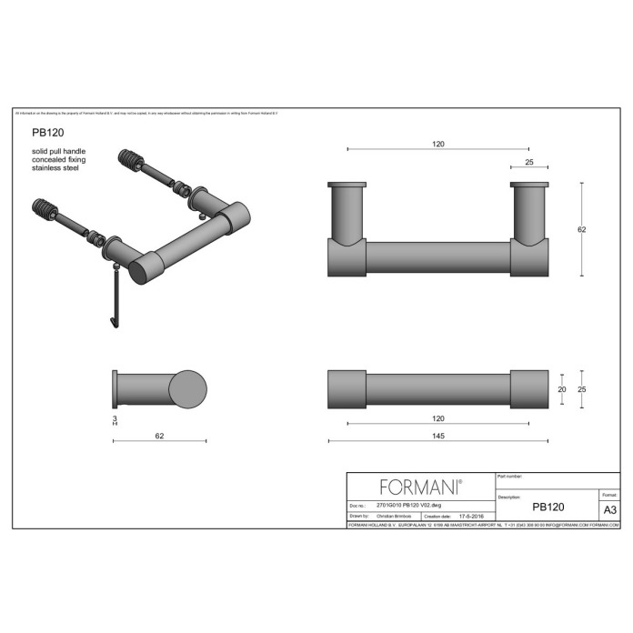 Formani | PB120 | massieve raamgreep | mat roestvast staal