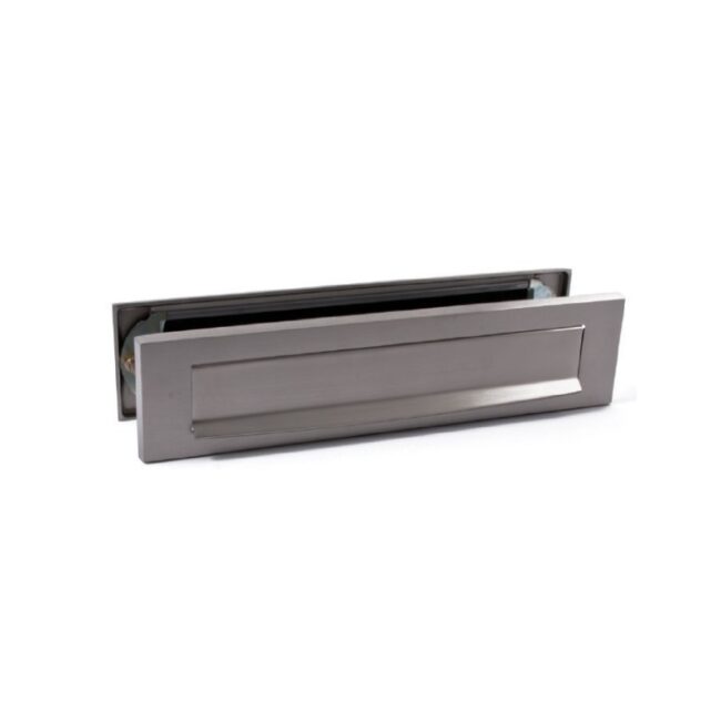 De Hardbrass Roestvrijstalen Voordeurset Aluminium bestaat uit een blind te monteren voordeurknop, een briefplaat met klepbescherming voor minder geluid, een SKG*** gekeurd veiligheidsrozet met een anti-kerntrek blok en een haakse deurkruk voor de binnenzijde.