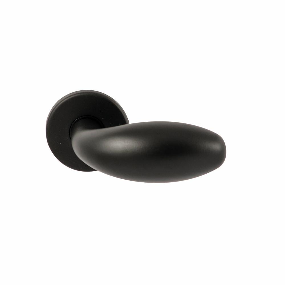 De Hard Brass | Shuffle Golf RR Dun Puurzwart Op Rond Rozet combineert een elegant design met hoogwaardige functionaliteit. Deze slanke deurkruk heeft een subtiele golvende vorm, wat zorgt voor een comfortabele grip en een verfijnde uitstraling. De puurzwarte afwerking maakt het een stijlvolle keuze voor moderne en industriële interieurs.