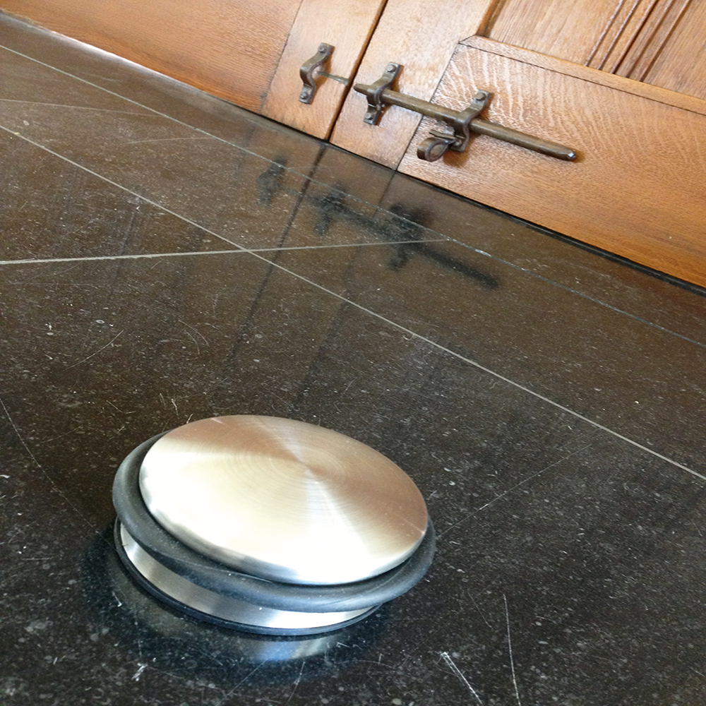 Zware vloerdeurstopper van RVS, direct klaar voor gebruik zonder montage.