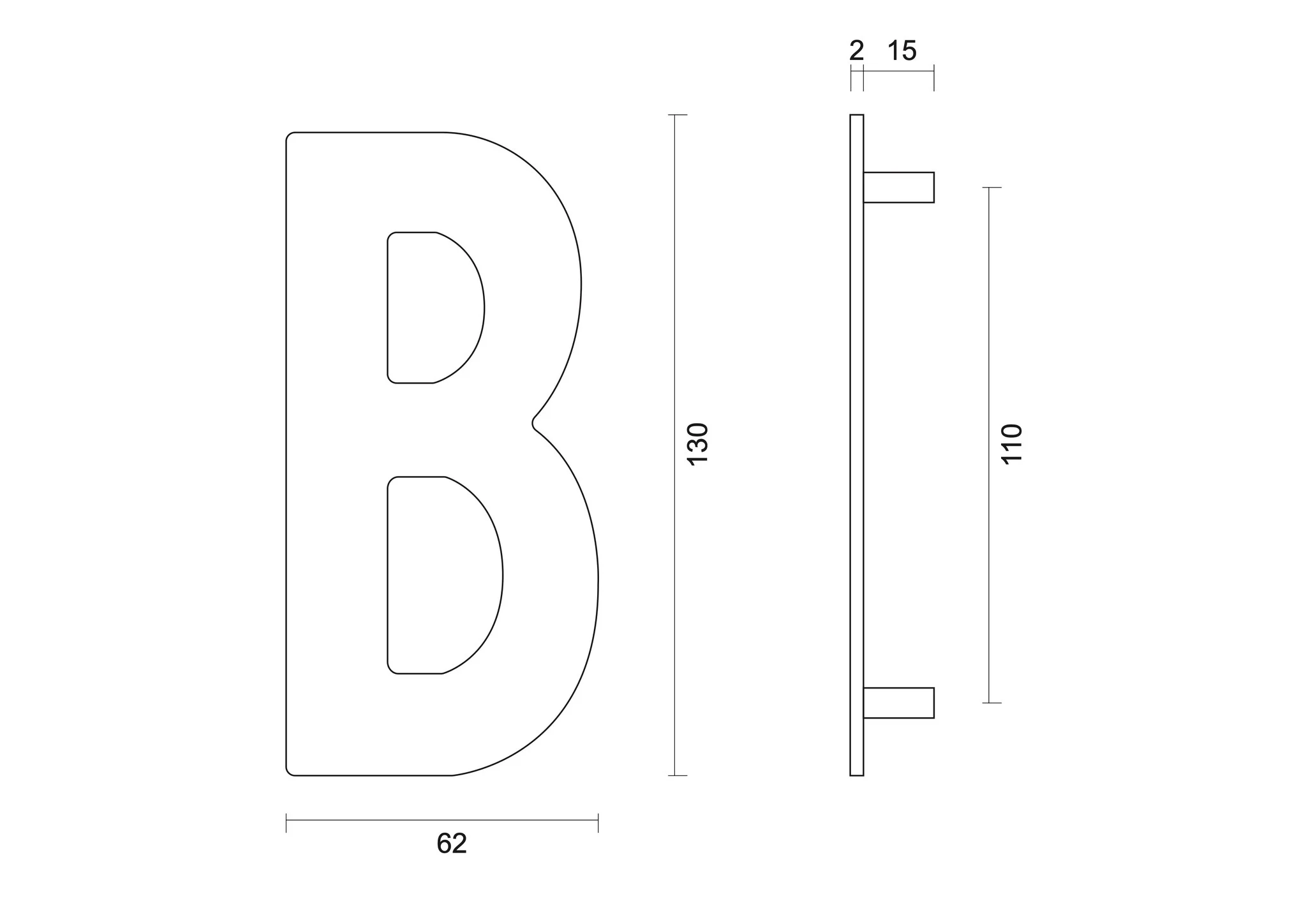 Deze huisletter “B” is gemaakt van RVS met een UV en mat zwarte coating. Hierdoor is de huisletter dus uiterst geschikt voor buiten gebruik. De subtiele RVS huisletter heeft een strakke vorm, een hoogte van 130mm, lengte van 62mm en een breedte van 2mm