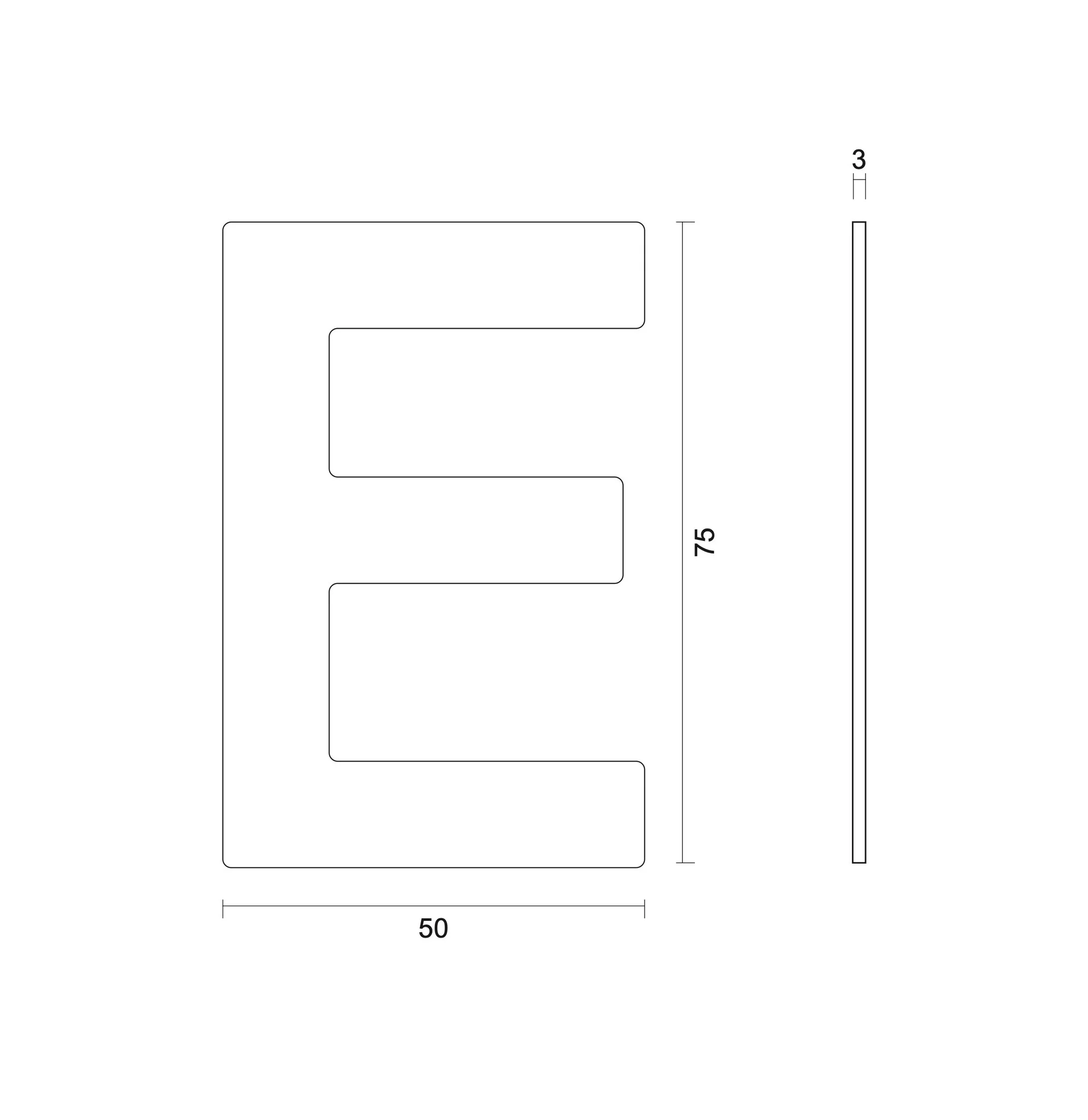 Deze huisletter “E” is gemaakt van RVS daarnaast is het huisletter zelfklevend. Hierdoor is de huisletter dus uiterst geschikt voor buiten gebruik. De subtiele RVS huisletter heeft een strakke vorm, een hoogte van 75mm, lengte van 50mm en een breedte van 3mm.