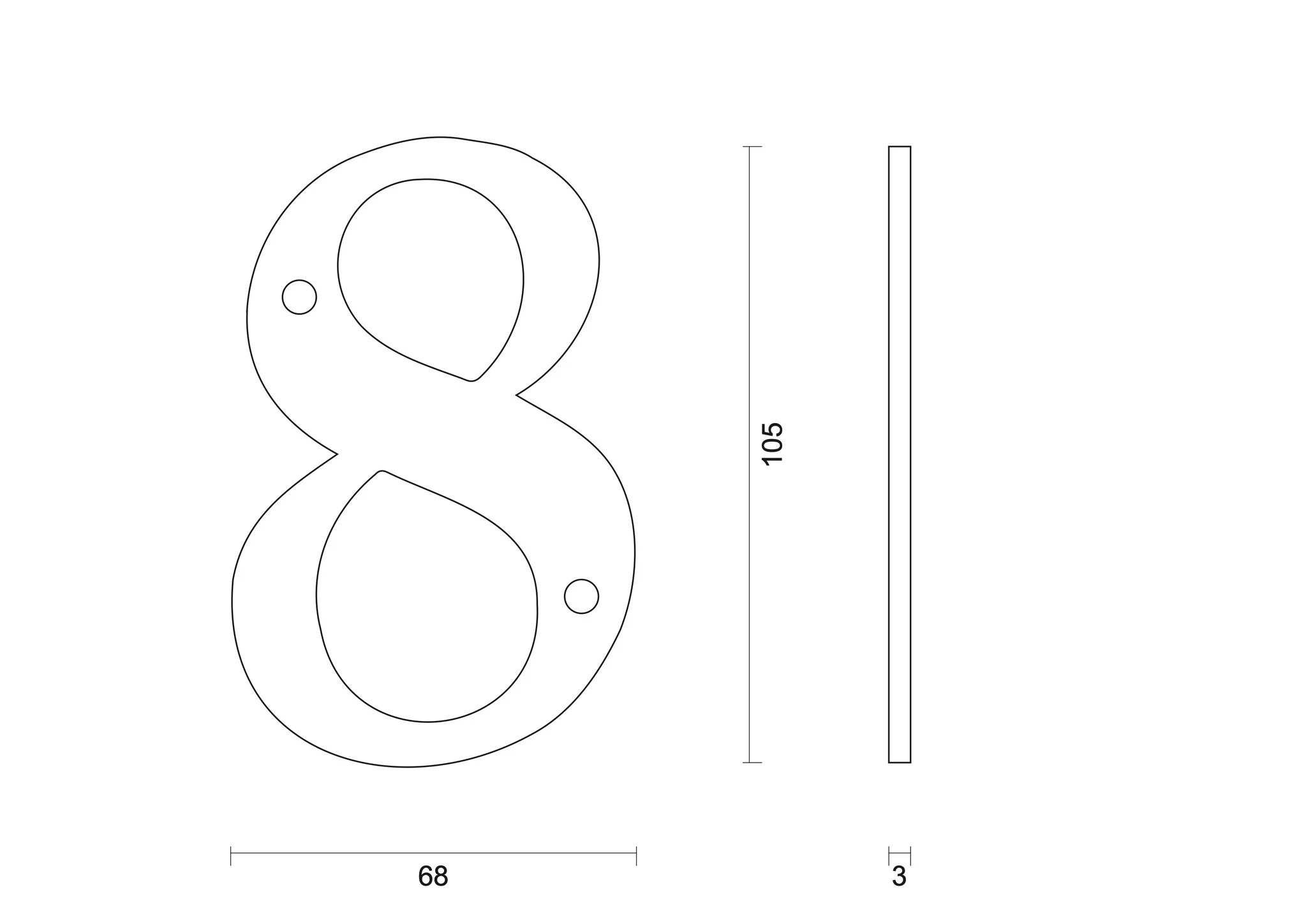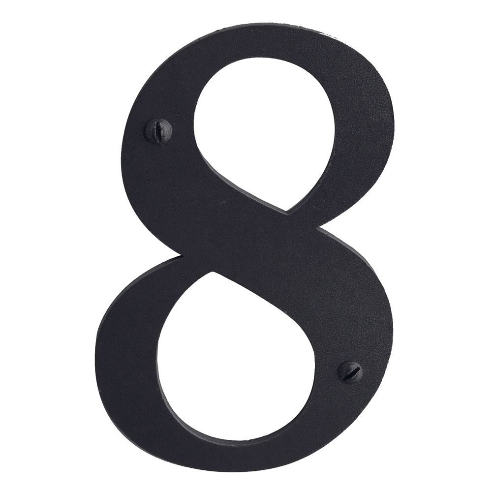 Dit huisnummer “8” is gemaakt van metaal met een zwarte UV coating. Hierdoor is dit huisnummer uiterst geschikt voor buiten gebruik. Het subtiele metalen huisnummer heeft een ronde vorm, een hoogte van 105mm, een breedte van 68mm en dikte van 3mm.
