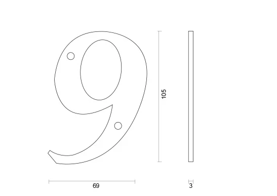 Dit huisnummer “9” is gemaakt van metaal met een vernislaag. Hierdoor is dit huisnummer uiterst geschikt voor buiten gebruik. Het subtiele metalen huisnummer heeft een ronde vorm, een hoogte van 105mm, een breedte van 69mm en dikte van 3mm.