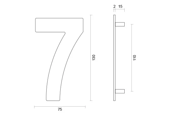 Dit huisnummer “7” is gemaakt van RVS. Hierdoor is dit huisnummer uiterst geschikt voor buiten gebruik. Het subtiele RVS huisnummer heeft een ronde vorm, een hoogte van 130mm, een breedte van 75mm en dikte van 2mm.