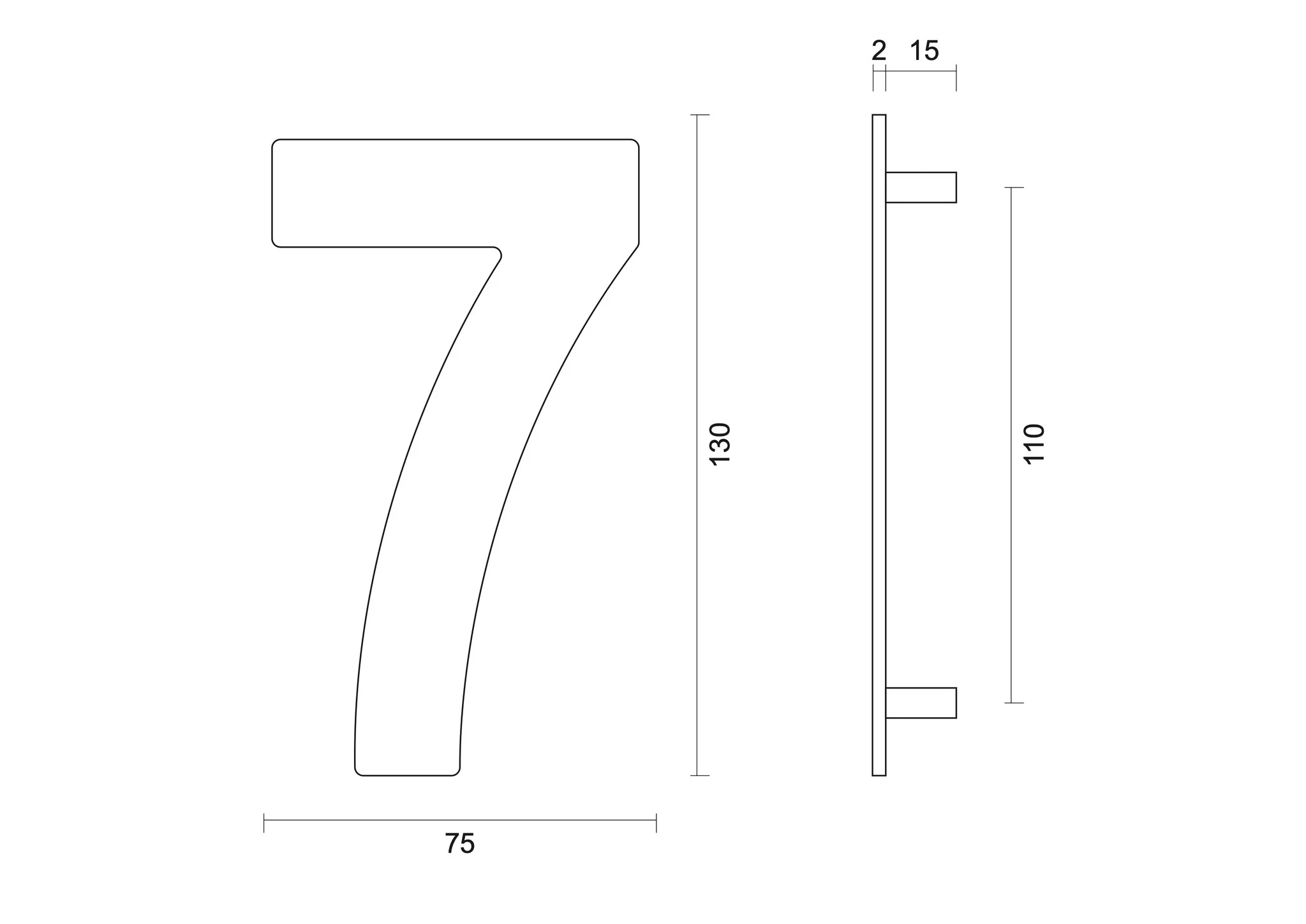Dit huisnummer “7” is gemaakt van RVS met een UV en mat zwarte coating. Hierdoor is dit huisnummer uiterst geschikt voor buiten gebruik. Het subtiele RVS huisnummer heeft een ronde vorm, een hoogte van 130mm, een breedte van 75mm en dikte van 2mm.