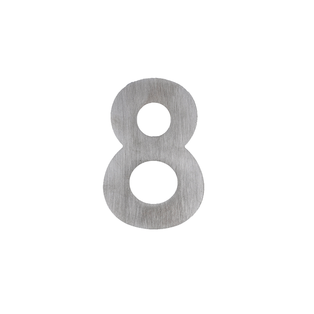 Dit huisnummer “8” is gemaakt van RVS daarnaast is het huisnummer zelfklevend. Hierdoor is dit huisnummer uiterst geschikt voor buiten gebruik. Het subtiele RVS huisnummer heeft een ronde vorm, een hoogte van 75mm, een breedte van 51mm en een dikte van 3mm.