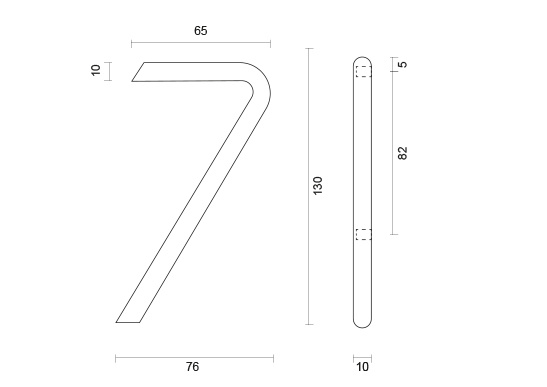 Het huisnummer heeft een ronde vorm, een hoogte van 130 mm en een diameter van 10 mm. Dit nummer wordt per stuk geleverd en bevat alle benodigde bevestigingsmaterialen voor een eenvoudige montage.