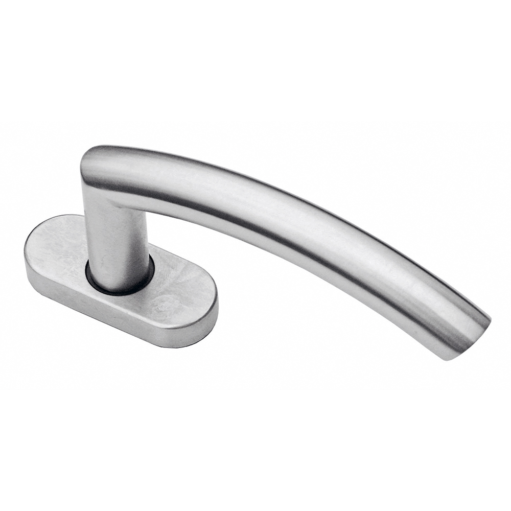 De L-vormige handgreep is gemonteerd op een ovaal rozet met een breedte van 31 mm.