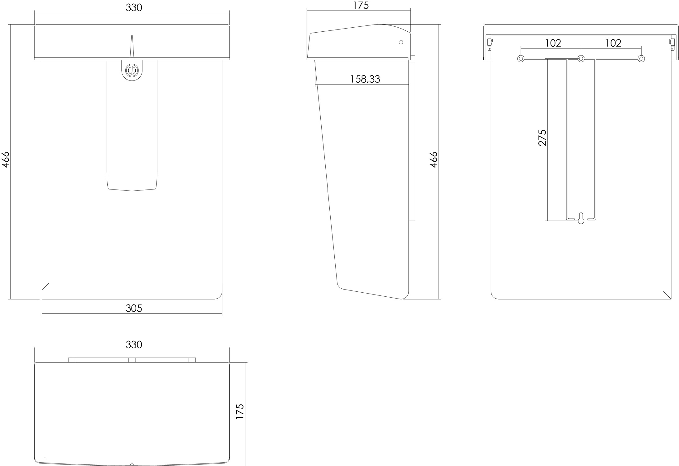 Afmetingen:Â 466 x 330 x 175 mm (h x b x d)