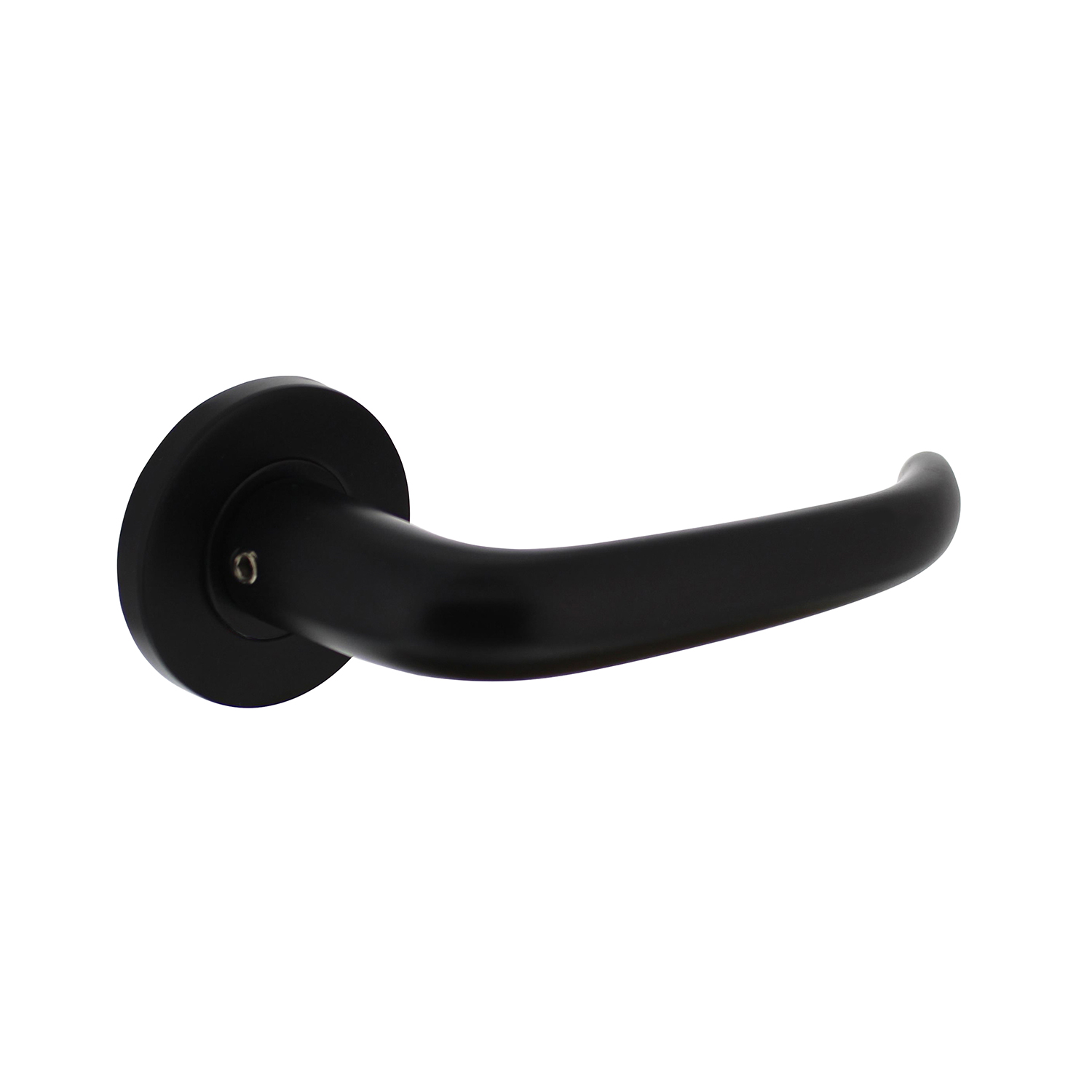 Deze deurkruk Sabel op ronde rozet bestaat uit aluminium met een zwarte coating en is hierdoor licht van gewicht en sterk tegelijk. De rozet is voorzien van nokken, waardoor de kruk beter op zijn plek wordt gehouden. Daarnaast is de rozet voorzien van een veer, die ervoor zorgt dat de kruk na gebruik weer terugveert naar zijn originele horizontale positie. Deze deurkruk is geschikt voor een deurdikte van 38 – 54 mm en wordt per paar geleverd inclusief bevestigingsmateriaal.