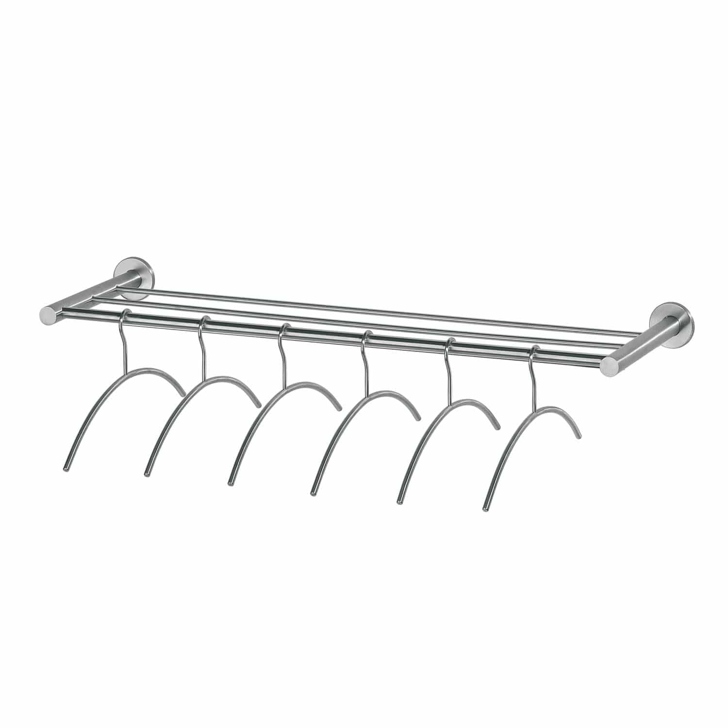 Een garderoberek RVS is handig voor het ophangen van onder andere jassen. Dit roestvast stalen garderoberek is voorzien van zes kledinghangers. Door het gebruik van rvs heeft dit rek een lange levensduur. Dit product heeft een breedte van 1 meter. Montage aan de wand is eenvoudig met het meegeleverde bevestigingsmateriaal.
