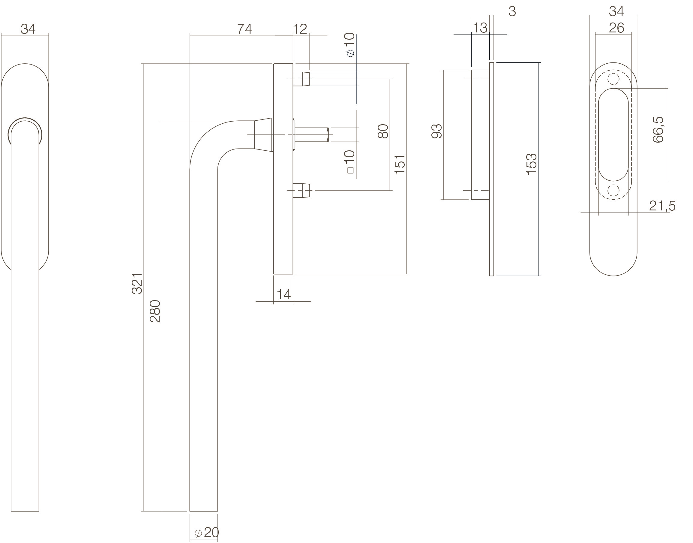 Schuifdeurkom buiten ,Hef-/schuifdeurkruk op schild binnen ,Bevestigingsmateriaal |