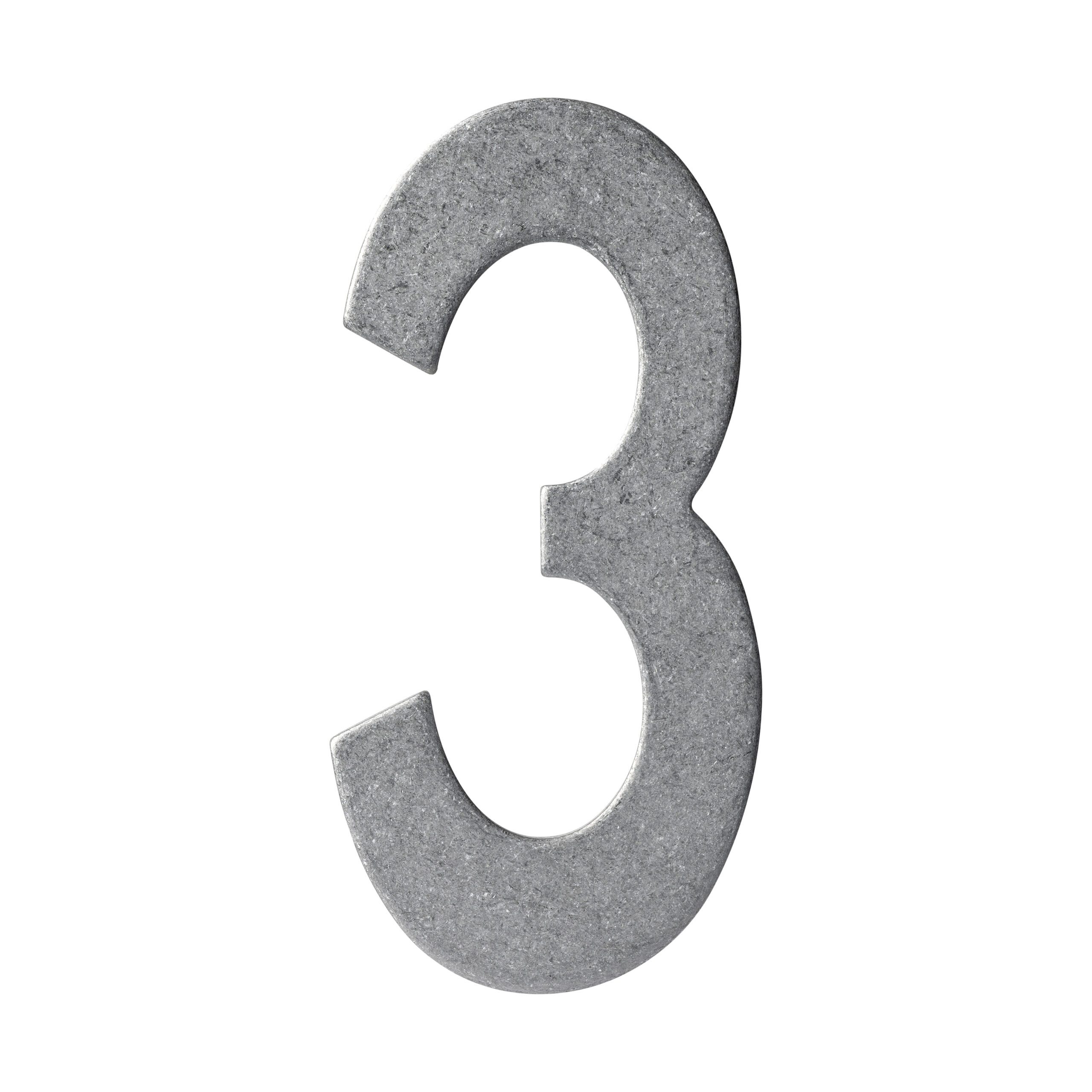 Strakke Huisnummer 3 150mm RVS Getrommeld met een Getrommelde finish. Een lange levensduur door het gebruik van massief rvs. Dit huisnummer heeft een hoogte van 150 mm en een dikte van 3 mm. Montage is eenvoudig door het bijgeleverde bevestigingsmateriaal.