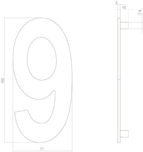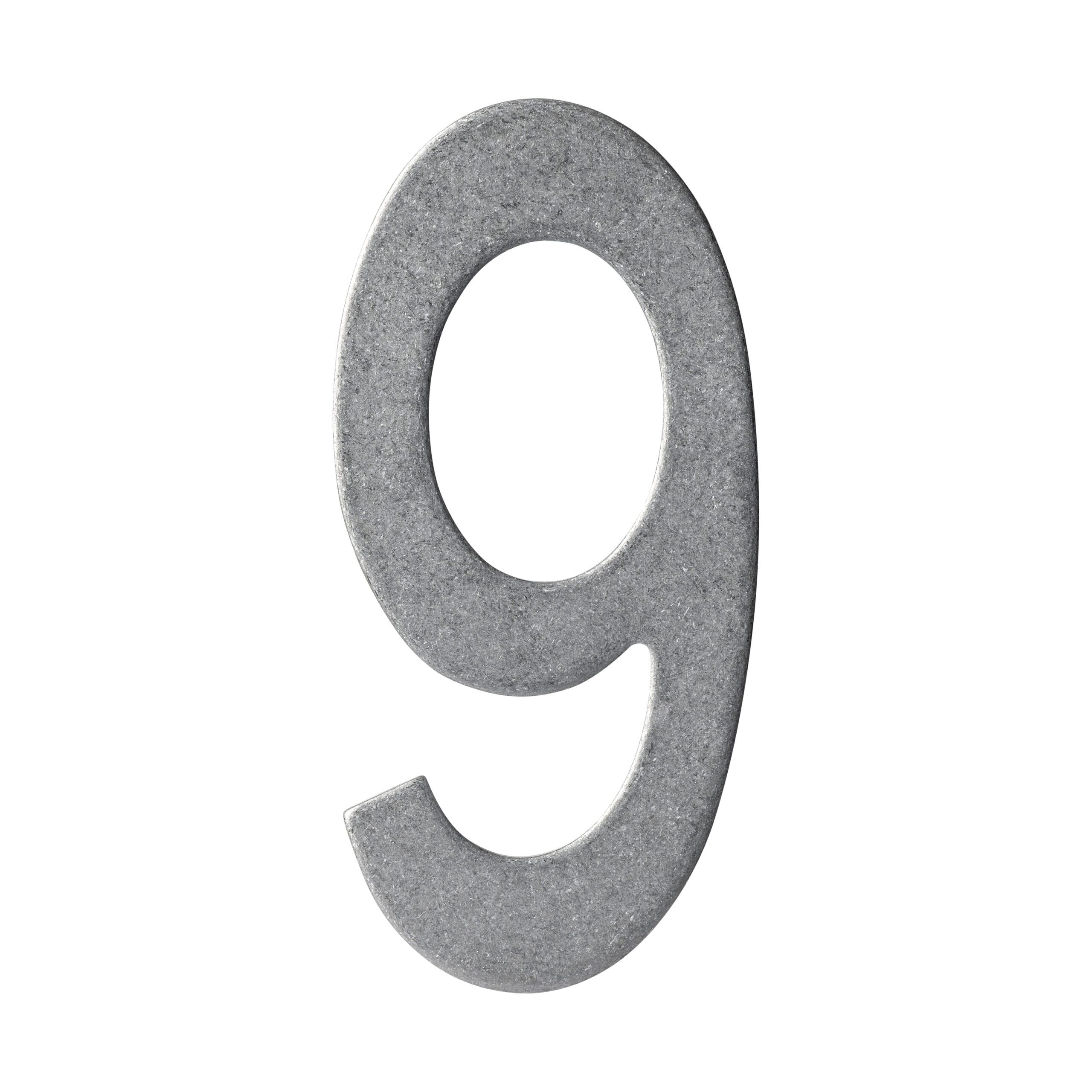 Strakke Huisnummer 9 150mm RVS Getrommeld met een Getrommelde finish. Een lange levensduur door het gebruik van massief rvs. Dit huisnummer heeft een hoogte van 150 mm en een dikte van 3 mm. Montage is eenvoudig door het bijgeleverde bevestigingsmateriaal.