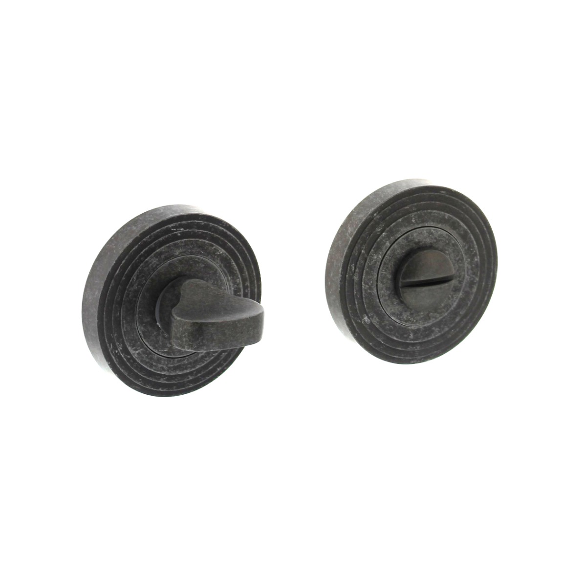 Met de Intersteel | Rozet met toilet-/badkamersluiting | 55x10mm | Oud Grijs voeg je een stijlvolle en praktische oplossing toe aan je deur, geschikt voor iedere ruimte waar privacy gewenst is.