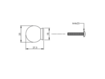 Specificaties Intersteel | Meubelknop 25mm | Bolrond | Achterplaat | RVS Geborsteld