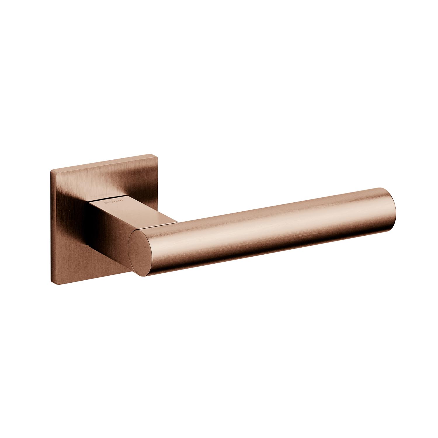 De Olivari | Deurkruk Euclide Q op rozet | Koper mat titaan PVD is ontworpen door de Italiaanse designer Nicola Novelletto. Dit ontwerp staat bekend om zijn eenvoud en het gebruik van drie basisvormen, wat zorgt voor een moderne en elegante uitstraling. Deze deurkruk is vervaardigd uit messing en heeft een hoogwaardige matte koperkleurige PVD-coating. De vierkante rozet is maar liefst 5 mm dun, wat de deurkruk een strakke en verfijnde look geeft.