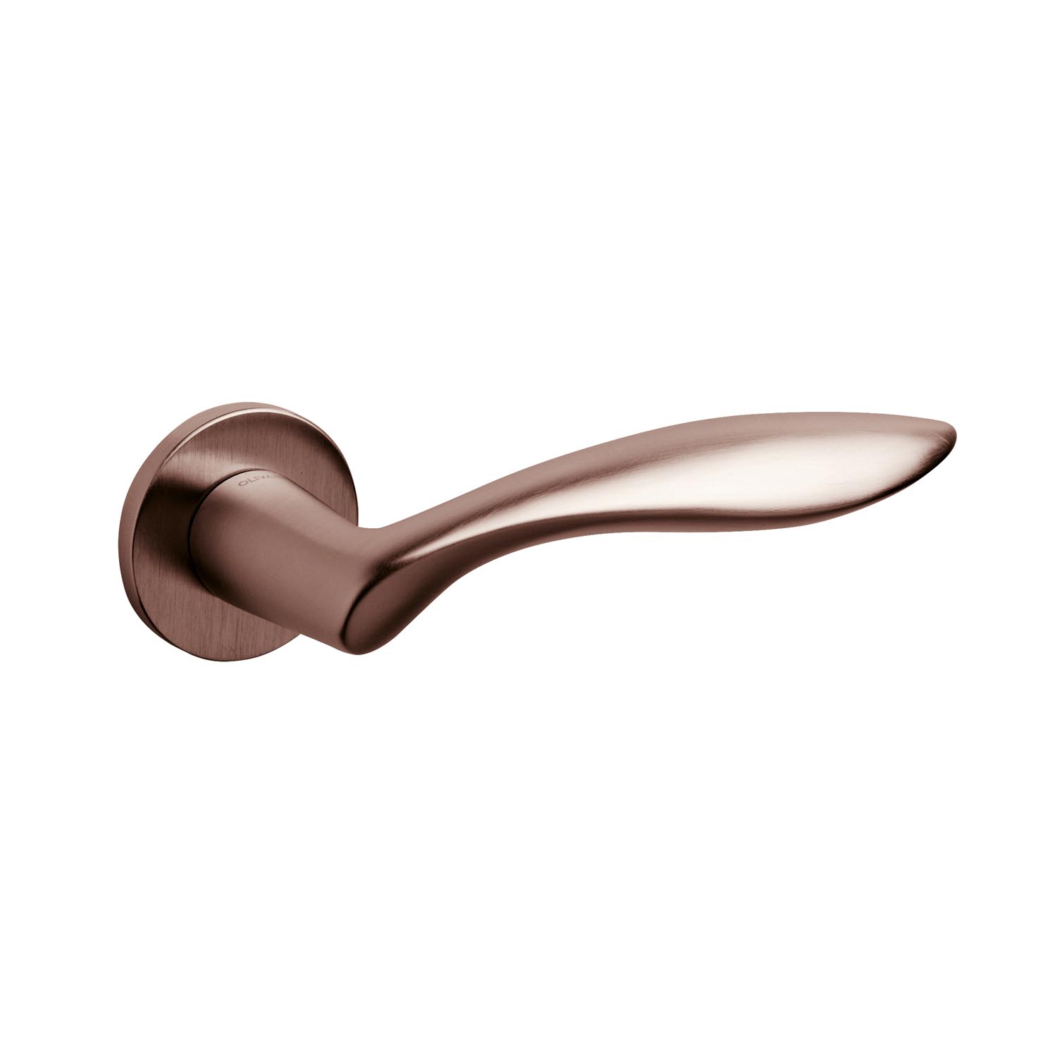 De Olivari | Deurkruk Onda op rozet | Brons mat titaan PVD is ontworpen door de Italiaanse designer Nicola Novelletto. Deze deurkruk valt op door de ergonomische en golvende (onda in het Italiaans) vormgeving, die zorgt voor een comfortabele greep en een unieke uitstraling. De deurkruk is uitgevoerd in messing en heeft een hoogwaardige matte bronskleurige PVD-coating. Door deze speciale behandeling blijft de finish van uitzonderlijke kwaliteit behouden.