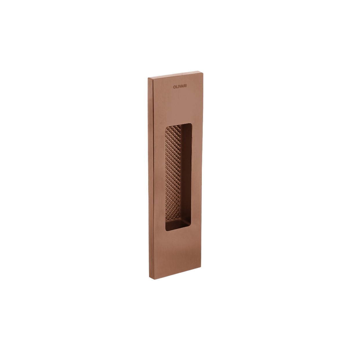 De Olivari | Schuifdeurkom Siro | Koper mat titaan PVD is een prachtige en luxe toevoeging aan uw schuifdeuren. Deze rechthoekige schuifdeurkom is vervaardigd uit hoogwaardig messing en is voorzien van een hoogwaardige matte koperkleurige PVD coating. Dankzij deze speciale behandeling is de finish van uitzonderlijke kwaliteit en blijft deze gedurende 10 jaar in topconditie.