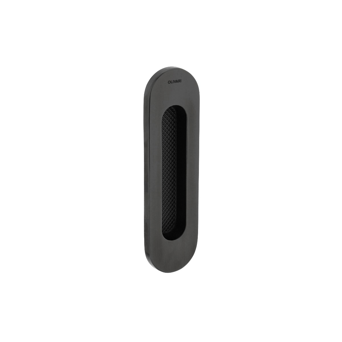 De Olivari | Schuifdeurkom Vico | Antraciet mat titaan PVD biedt een elegante en moderne afwerking voor schuifdeuren. Deze ovale schuifdeurkom is vervaardigd uit messing en voorzien van een hoogwaardige matte antracietkleurige PVD-coating. Dankzij deze speciale behandeling blijft de finish behouden tot wel 10 jaar, wat zorgt voor langdurige kwaliteit en een stijlvolle uitstraling.