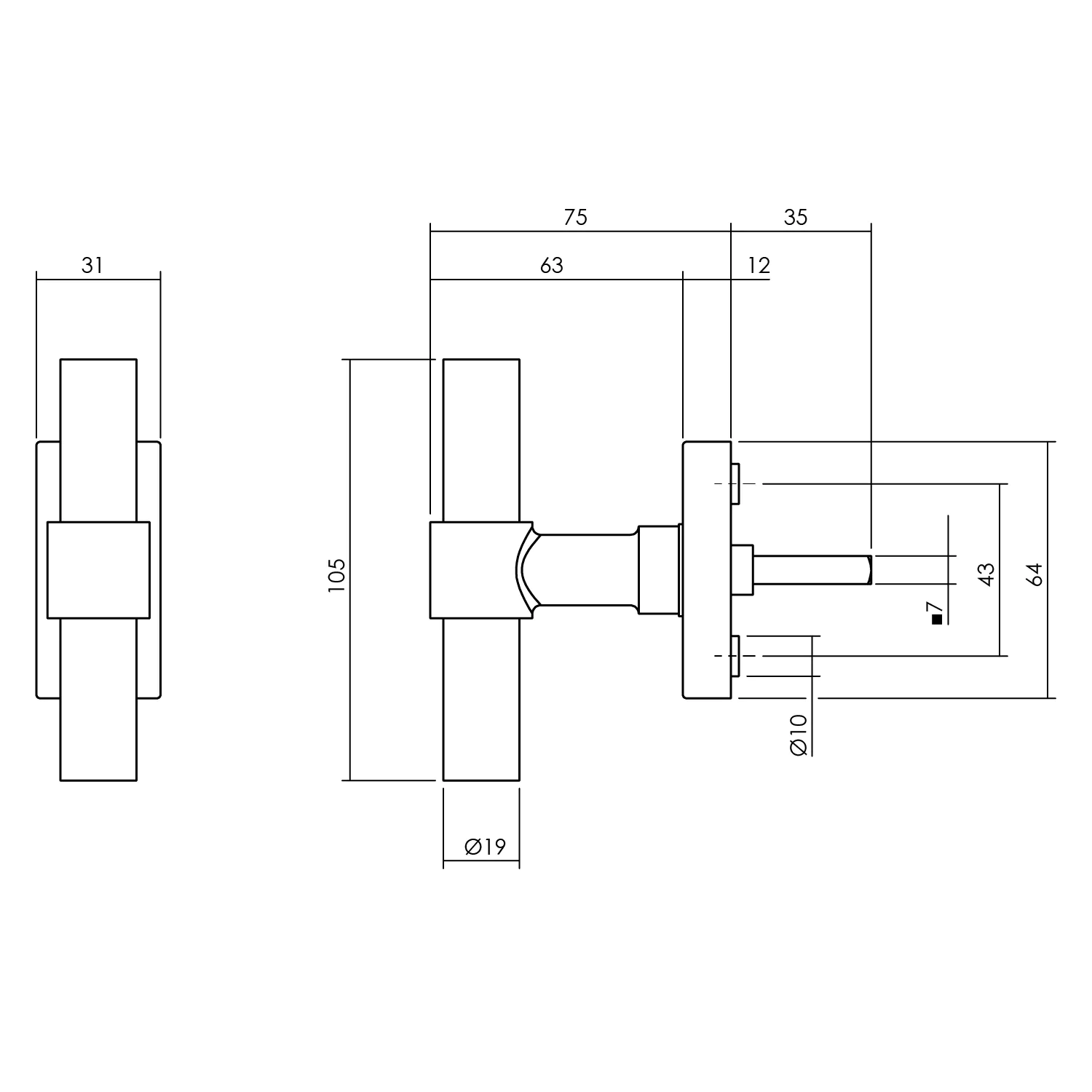 Intersteel | Raamkruk T-vorm | Rechthoek | Zwart