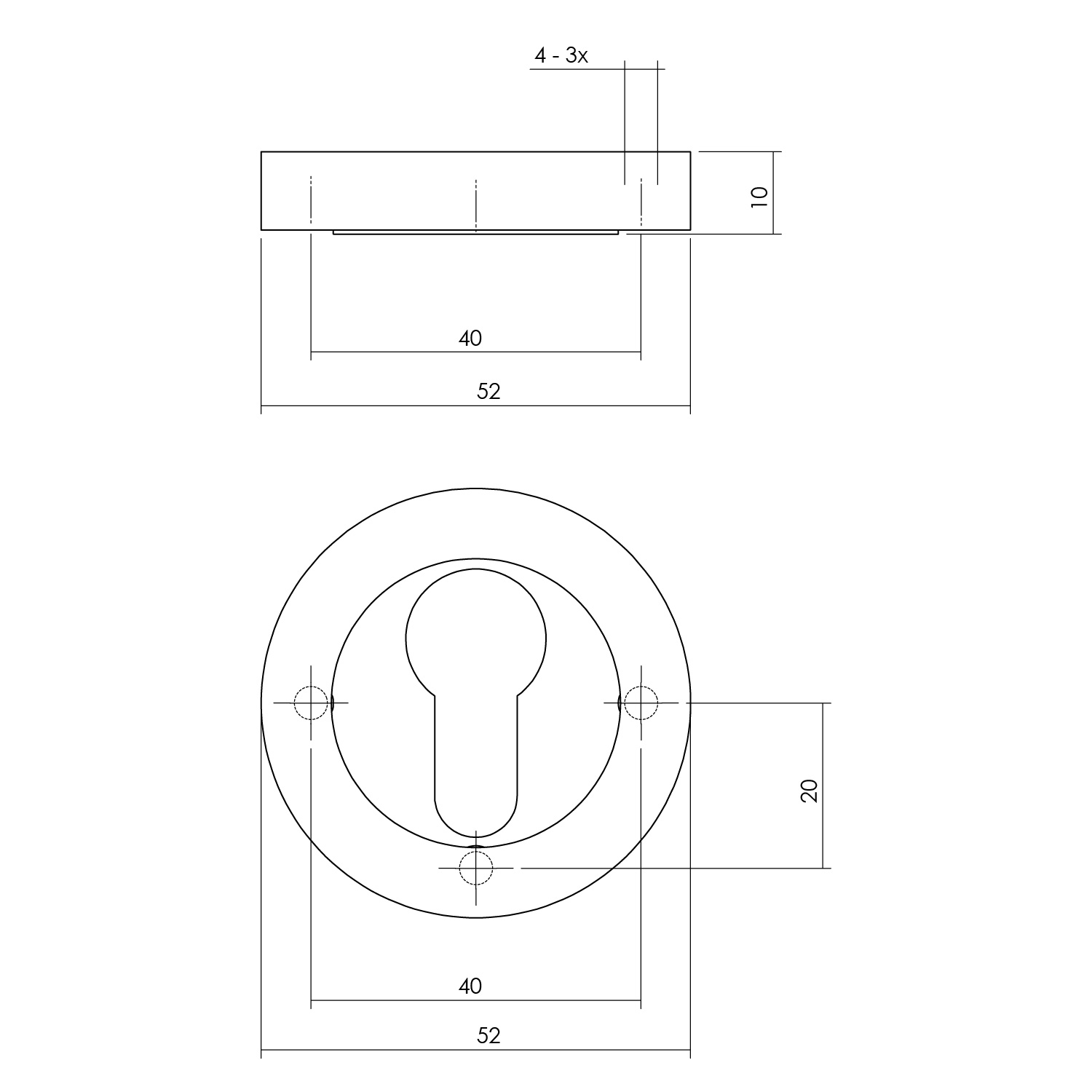 Specificaties Intersteel | Rozet met profielcilindergat | Rond | 52x10mm | Wit