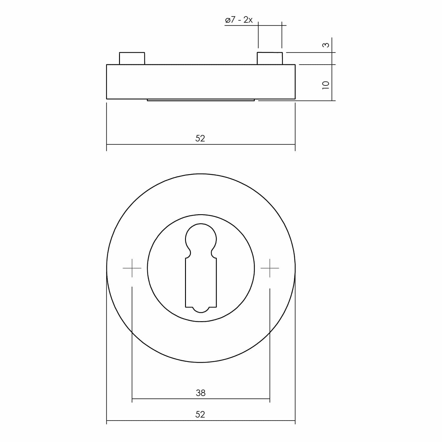 Specificaties Intersteel | Rozet met sleutelgat | 52x10mm | Antraciet Grijs