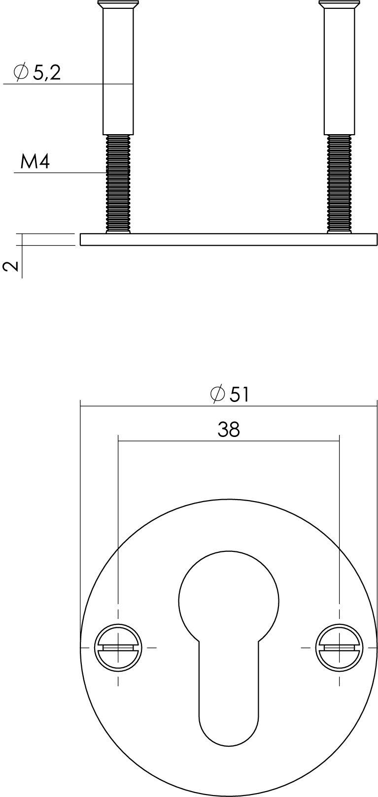 Rozet met profielcilindergat ,Bevestigingsmateriaal voor montage |
