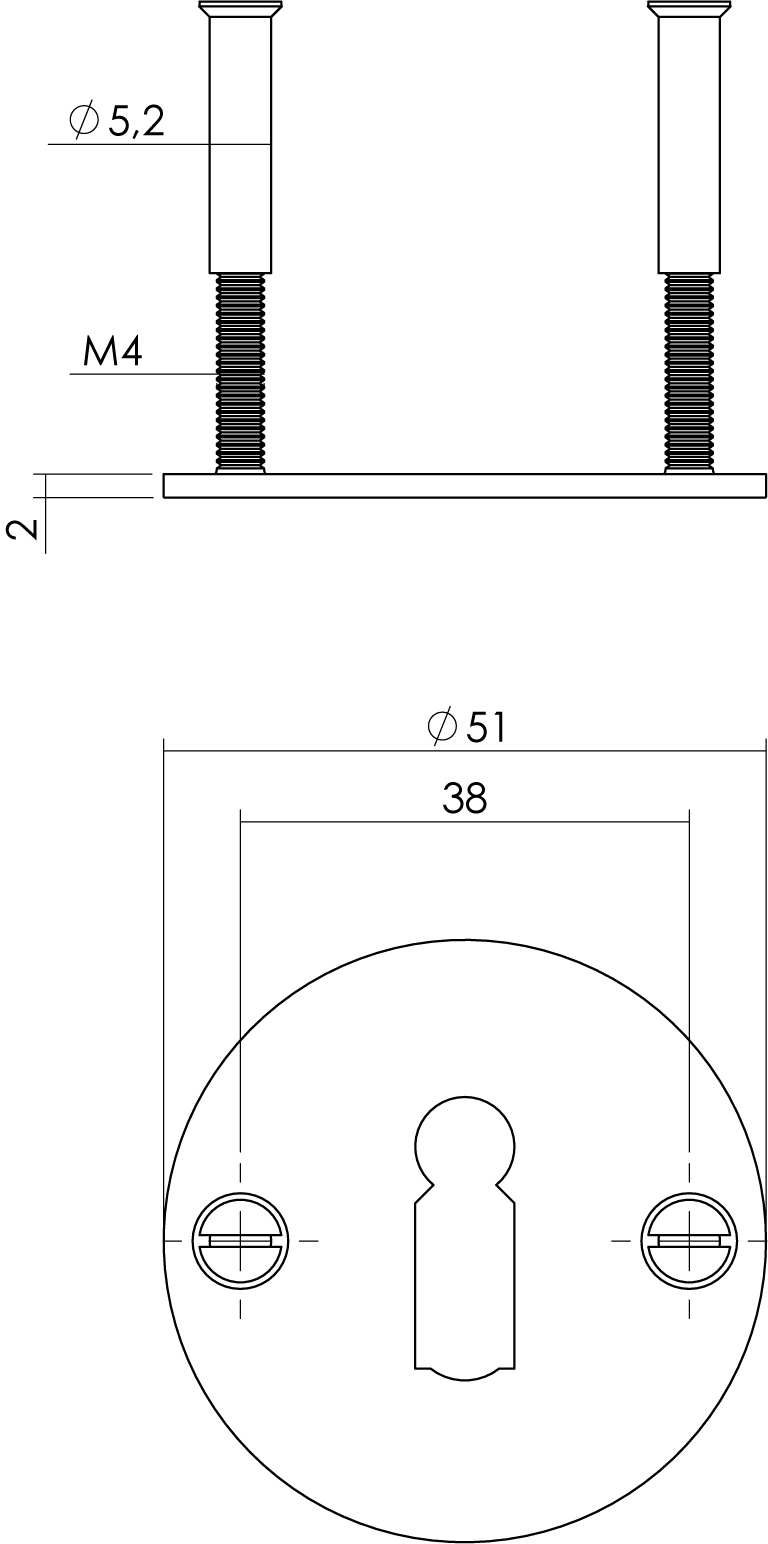 Kenmerken Intersteel | Rozet sleutelgat | 2mm | Dun | RVS/Zwart
