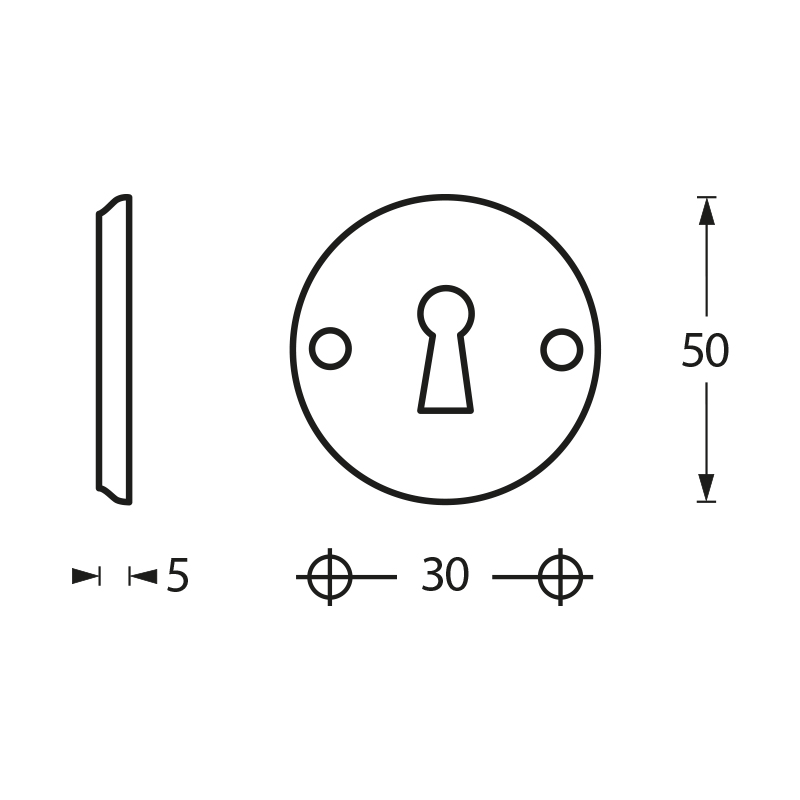 • Design: Ronde vorm met schroefgat en sleutelgat.