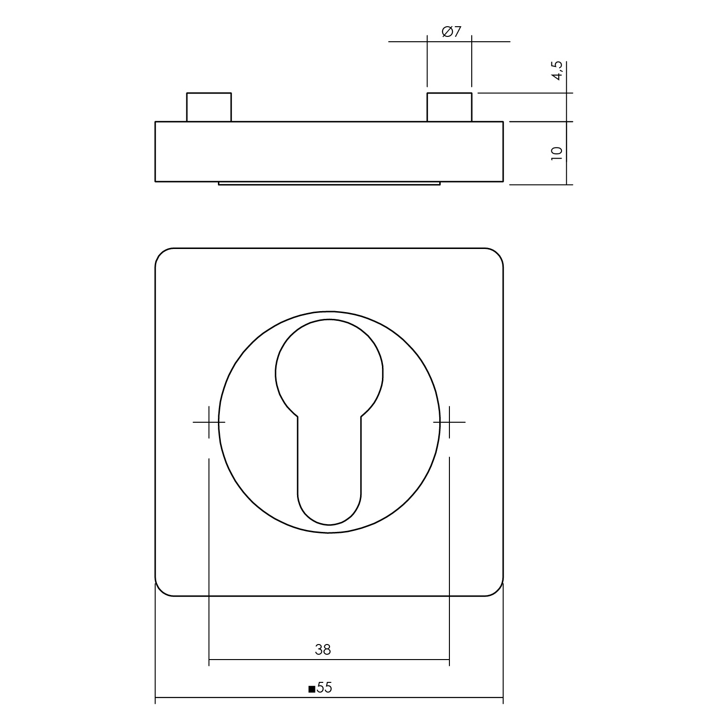 • 1 vierkante rozet met cilindergat