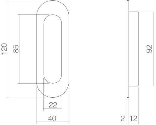 Kenmerken Intersteel | Schuifdeurkom | 120x40mm | Ovaal | Blind | Mat Zwart