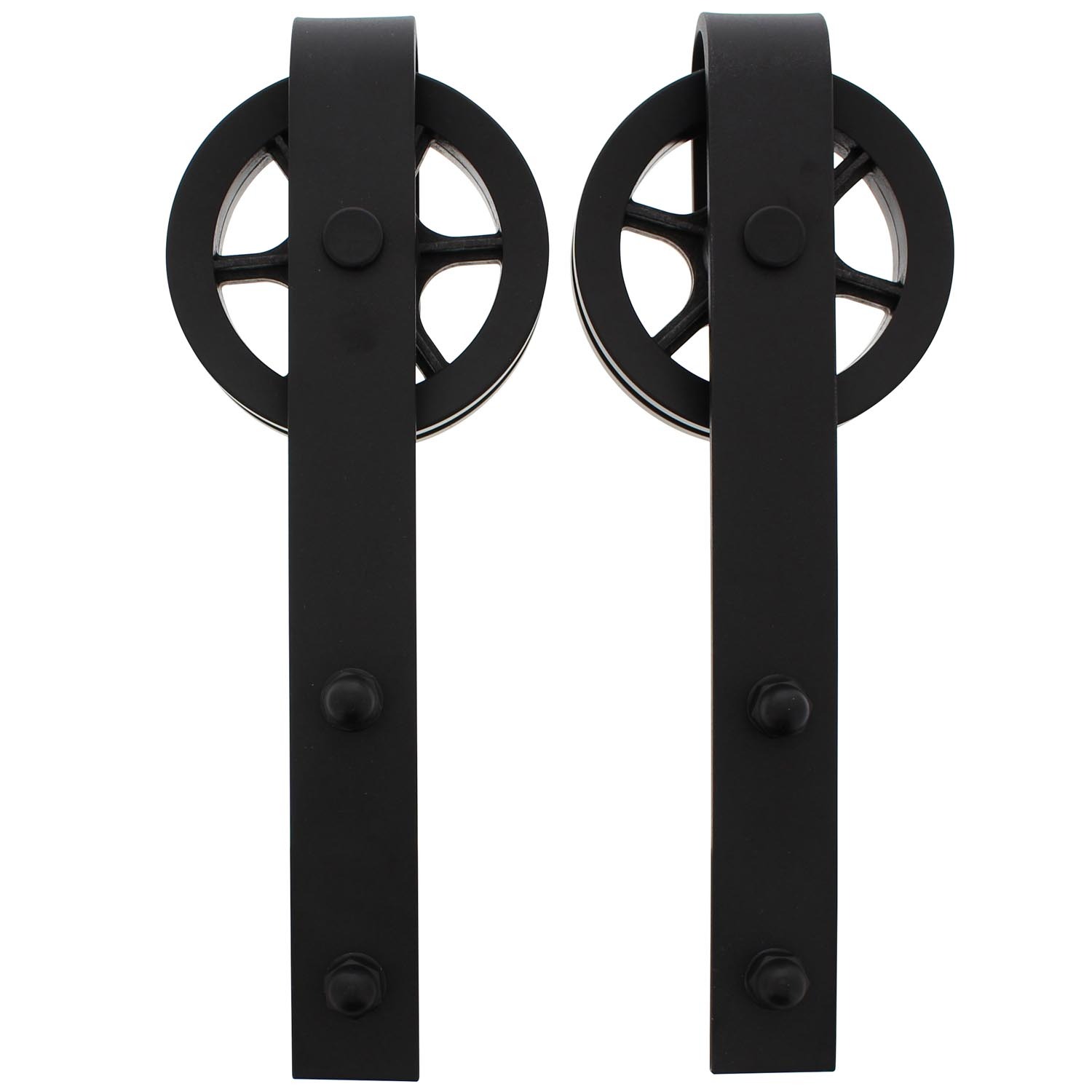De Intersteel | Set van 2 hangrollen Wheel | 340mm | Mat Zwart combineert een industrieel design met functionaliteit. Deze hangrollen zijn perfect voor een stevig schuifdeursysteem en hebben een opvallend wielontwerp met een matzwarte afwerking.