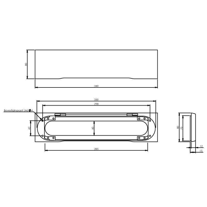 De Intersteel | Tochtwering | Rechthoek met klep verdekt | 340x76mm | RVS Geborsteld is een stijlvolle manier om tocht te voorkomen.