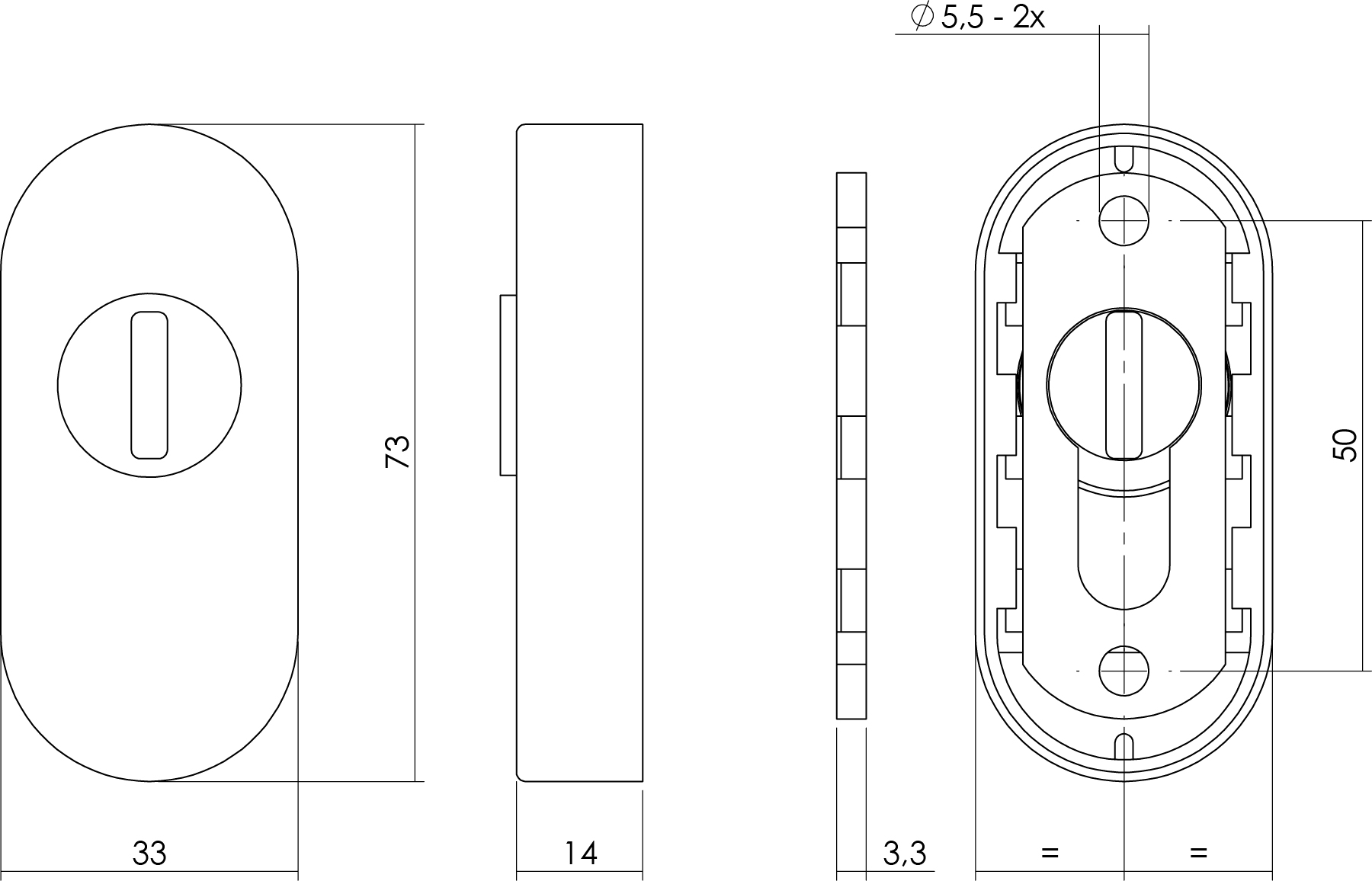 Kenmerken Intersteel | Veiligheid-schuifrozet met sleufplaatje | Ovaal | RVS Geborsteld