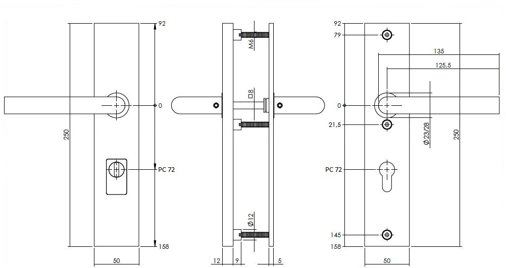 Specificaties Intersteel | Veiligheidsbeslag met kerntrekbeveiliging | PC72mm | SKG3 | Rechthoekig | RVS Geborsteld