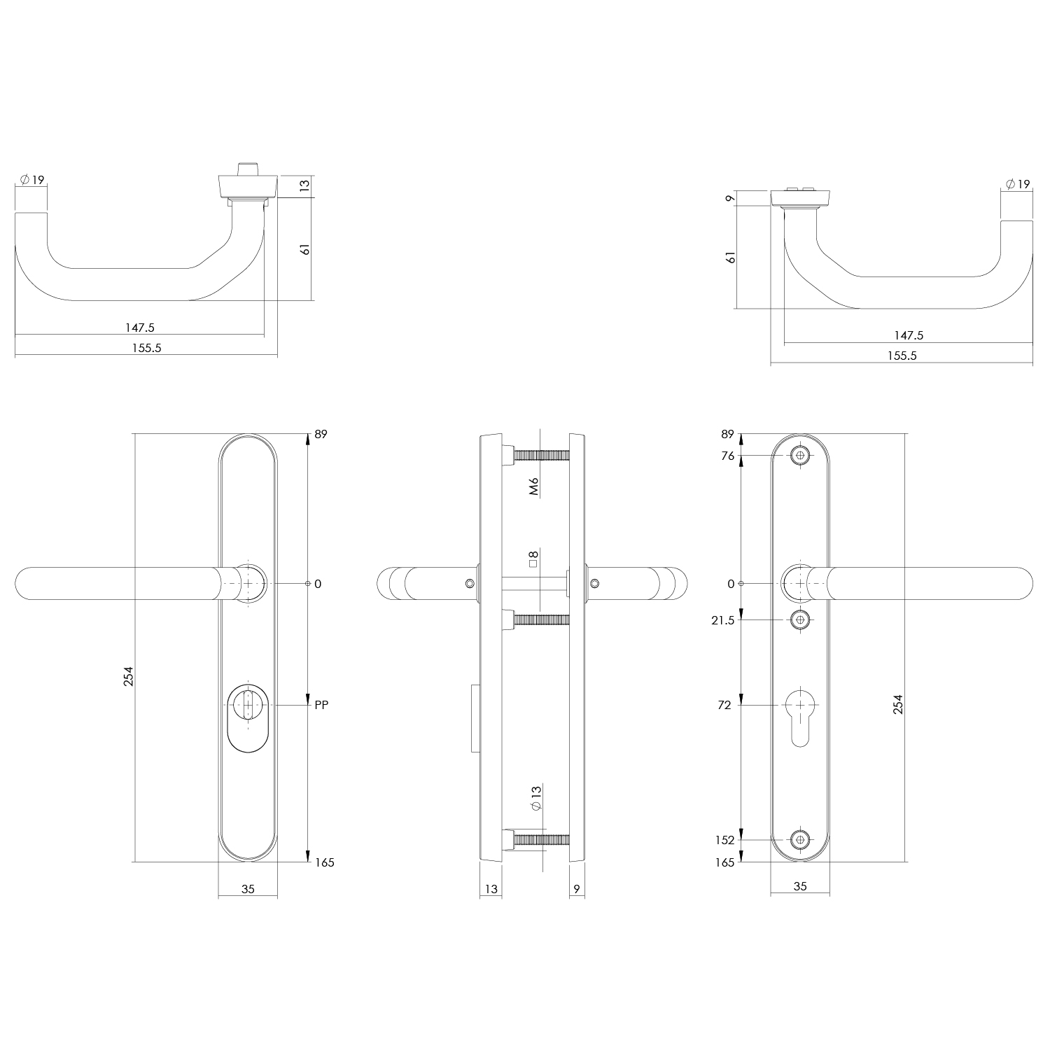 Kenmerken Intersteel | Veiligheidsbeslag met kerntrekbeveiliging | PC72mm | SKG3 | Smal schild | Achterdeurbeslag | RVS Geborsteld