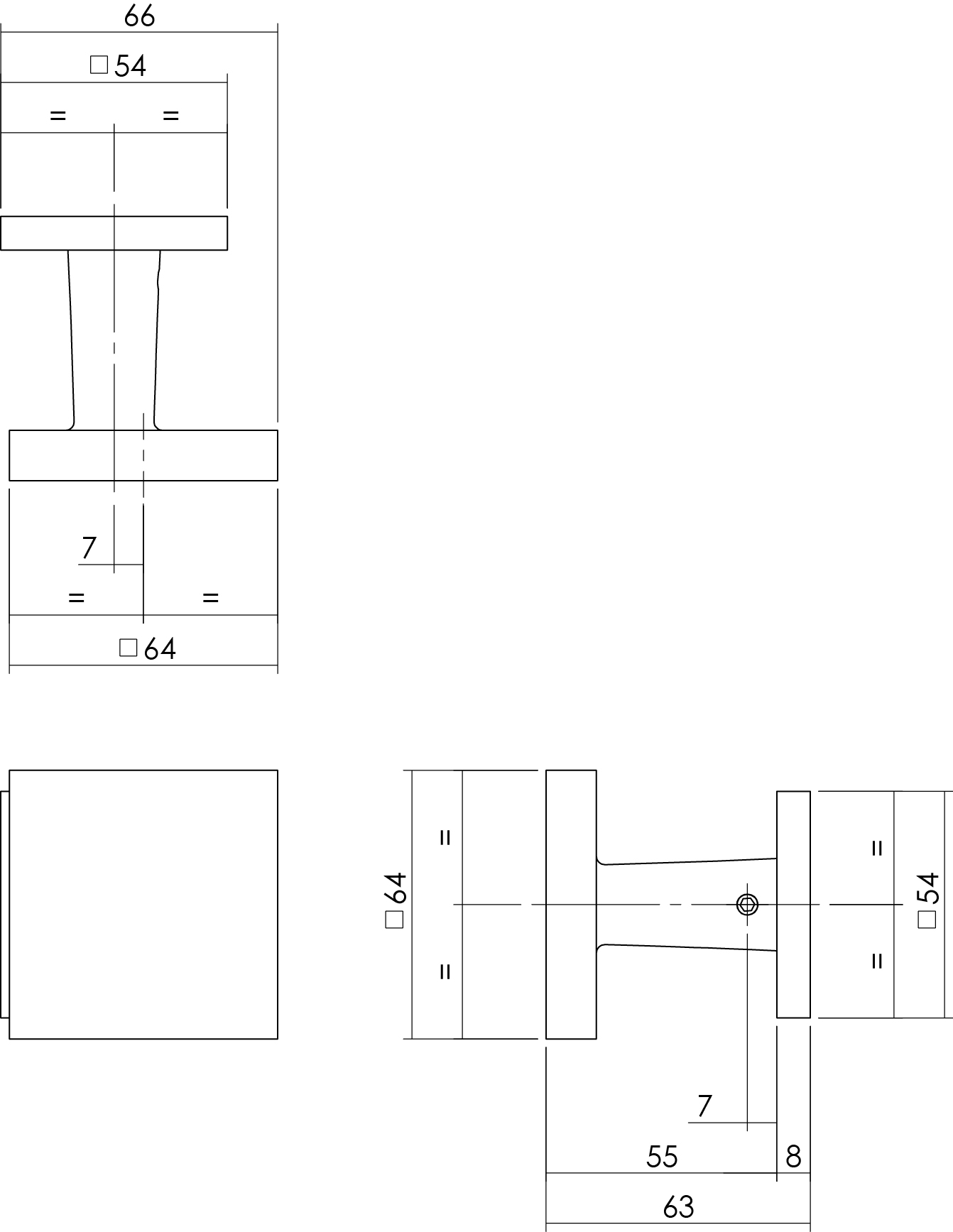 De Intersteel | Voordeurknop vast verkropt | Vierkant 64/54mm | Eénzijdige montage | RVS Geborsteld biedt een modern design en hoogwaardige kwaliteit.